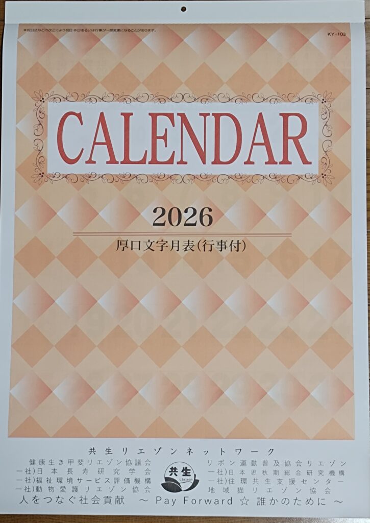 共生リエゾン・カレンダー2026年版が完成しました。大きくて使い易いカレンダーとなって